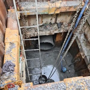 Excavation process was initiated following the marking of shaft pit locations by our setting engineer in accordance with the AFC design and the permit approval, utilizing a dig-and-push technique to create a 3.4m-deep drive pit (4m x 4m) and a 2m x 2m reception pit, both with a depth of 3.4m.