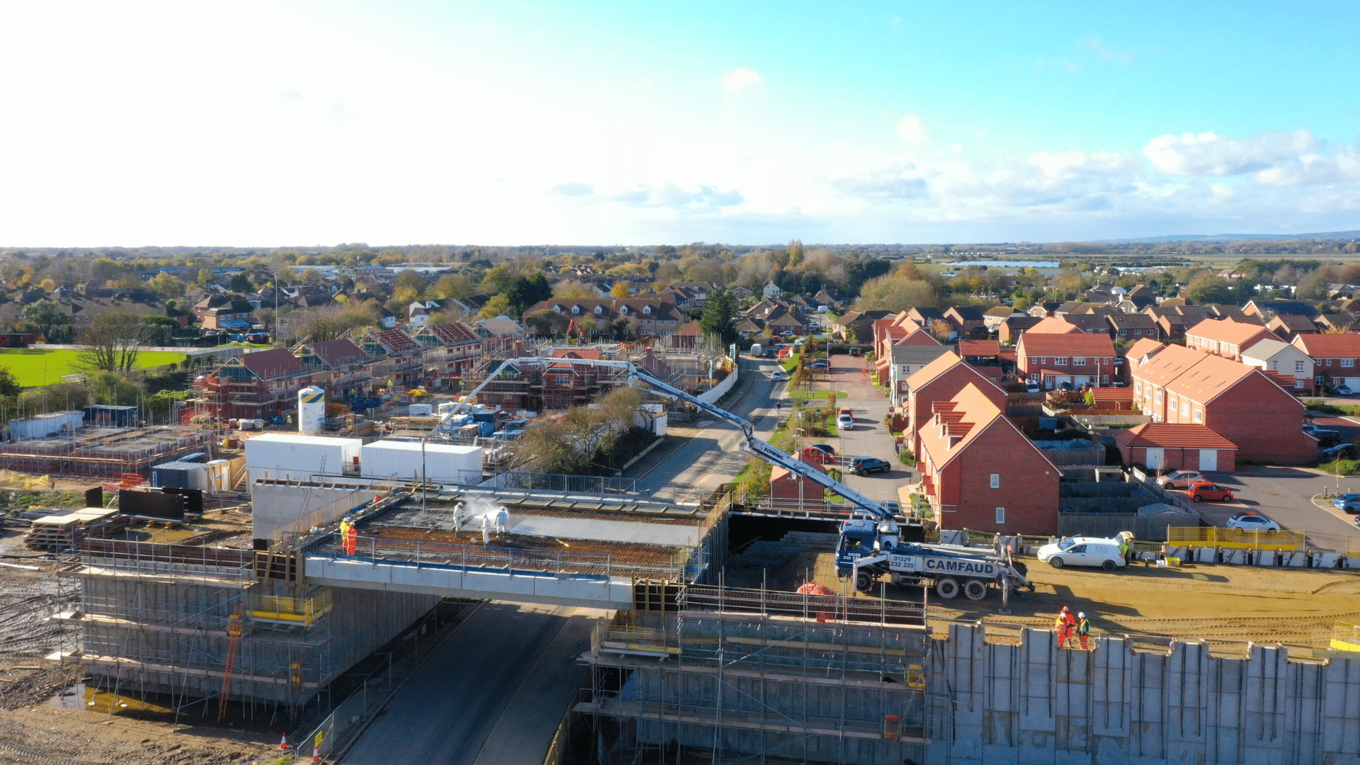 • Lyminster Bypass Bridges Project: Constructed two precast composite deck bridges, each with a 27-meter span, as part of a relief road to improve access and traffic flow for a new housing scheme on the A284. The project demanded precise planning and execution, ensuring timely delivery and high standards.